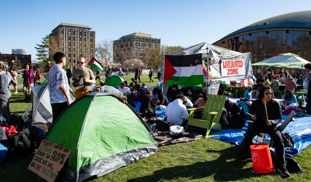 Par Max George. Synthèse n°2337, Publiée le 04/12/2024 - Manifestation propalestiniennes d'étudiants de Harvard et du MIT sur le campus du MIT (Cambridge, Massachusetts) le 22 avril 2024, Joseph Prezioso via AFP.